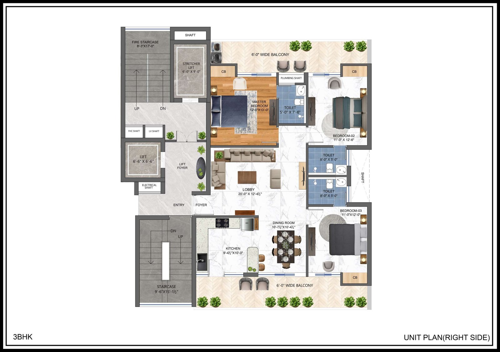 Rosero Elena offers two spacious 3BHK configurations – 1,954 sq.ft. and 1,964 sq.ft.